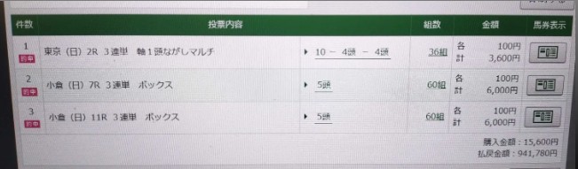 小倉11Rの馬単的中!