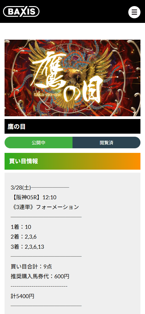 長く競馬をやっていると、当てたい気持ちだけで膨らませた買い目と、ちゃんと芯がある買い目は見れば分かります。BAXISの鷹の目は、その違いがかなりはっきり出ていました。