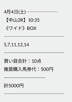 自分はもともと三連単みたいな派手な券種より、こういうワイドの当たり方に弱いです。バクシスの中山2Rはまさにそれで、10点BOX、1点500円で合計17,000円。5-14、5-11、11-14の3本をまとめて取ってるのが気持ち良かった。ワイドって地味に見えるけど、上位3頭をそのまま囲えてる時の満足感は結構大きいんですよね。しかも5,000円投資でしっかりプラス。こういう“無理のない勝ち方”ができるサイトは、長く見たくなります。バクシスは派手な煽りより、こういう現実的な結果で信頼を積むタイプだなと感じました。