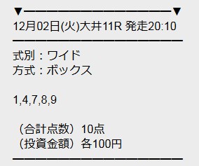 10頭立てのレースで大穴馬2頭を拾いワイド3種完全的中!