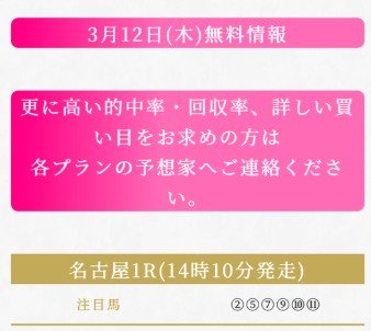 ハーレム競馬の無料予想に3月12日(木)に参加しました!