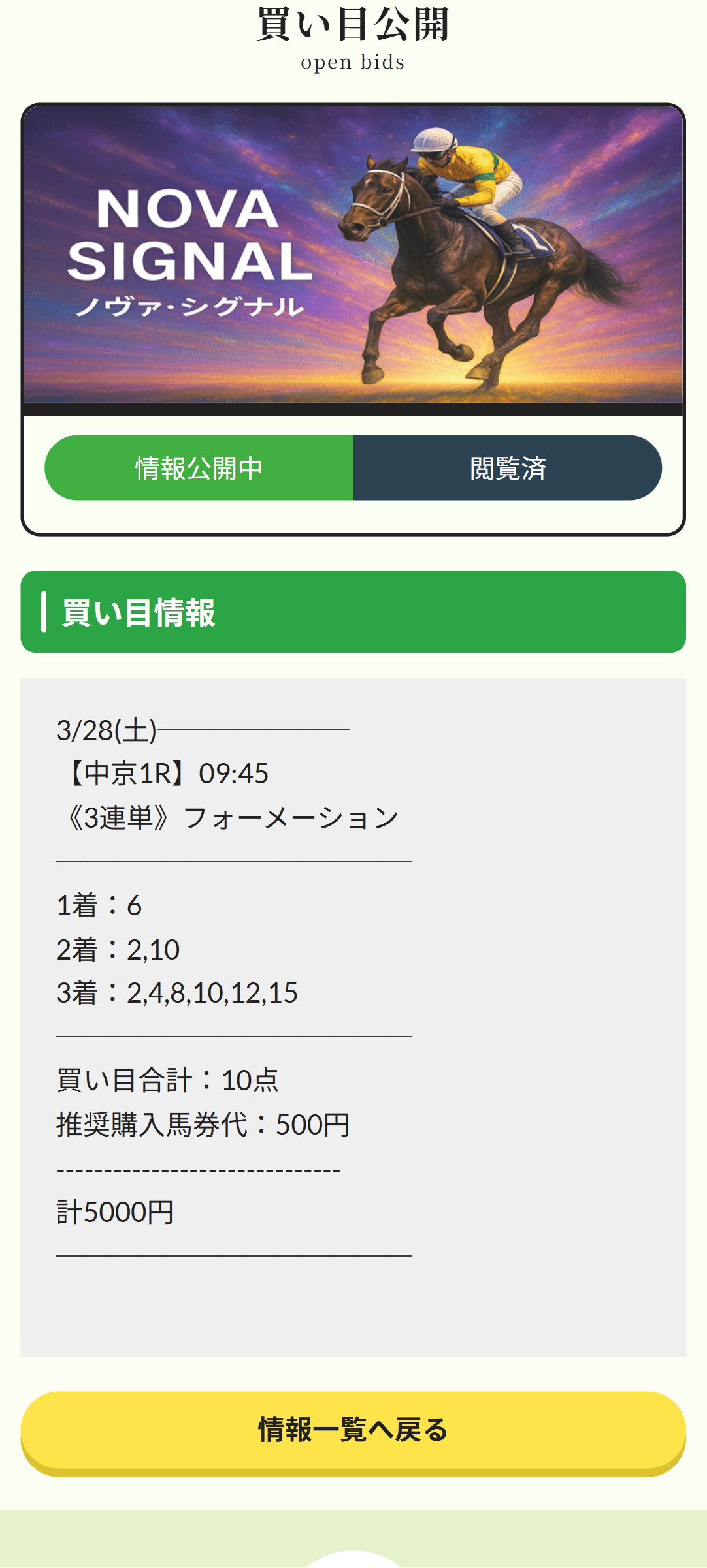 家計を預かる立場だと、5,000円使うのも本当はちょっと迷うんです。でも、初めての有料情報でえぶりのノヴァ・シグナルで入った結果を見た時は、その感覚が一気に変わりました。3月28日(土)の中京1Rで、投資5,000円が払戻703,000円。この金額って、ただ「当たった」で済む話じゃないんですよね。子どもの出費とか、月末の支払いとか、現実のお金って毎月重いので、こういうまとまった払戻が入ると気持ちが全然違います。私は競馬の細かい理屈はそこまで分からないタイプなんですが、それでもノヴァ・シグナルは「少ない元手で生活をちょっと楽にしてくれるかもしれない」と思わせてくれた情報でした。こういう現実的な数字を見せられると、やっぱり印象に残ります。