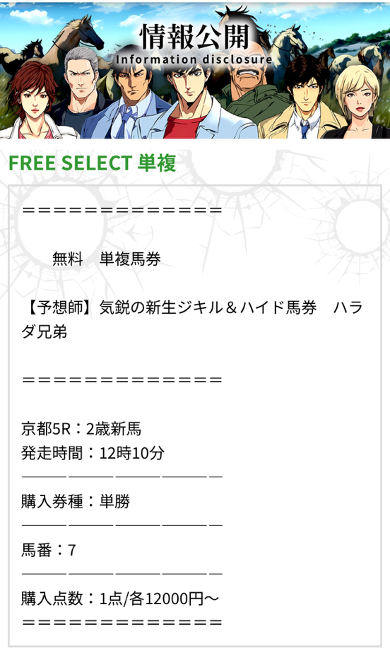 チョイスしたのはエフセレクトって言うサイトの無料予想