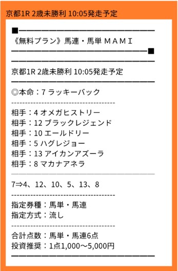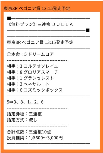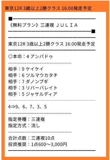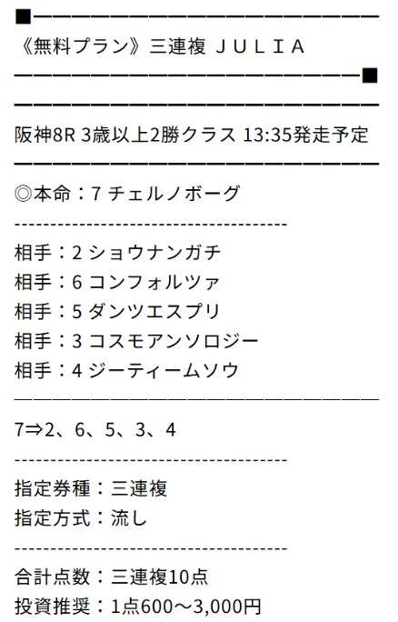 無料予想買い目点数1点で単複ダブル的中