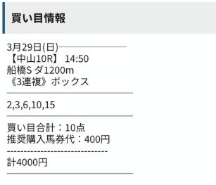 中山10Rの無料予想が三連複的中