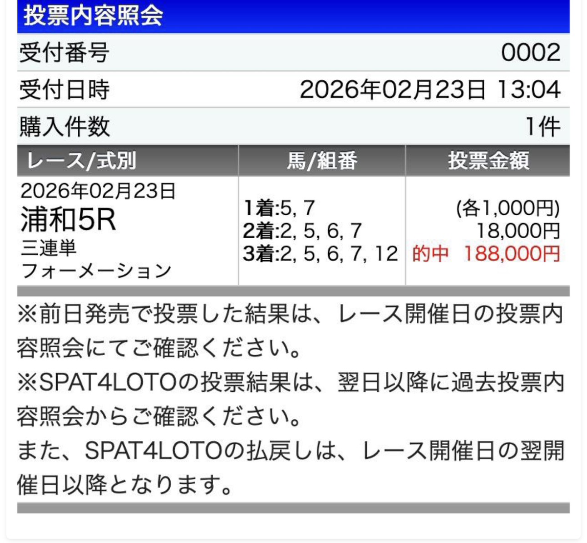 買い目点数も6点だったので馬券代を1点2000円で勝負