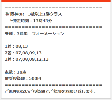 指示は馬連5点だったんだけどついでに1頭軸で三連複も買った結果