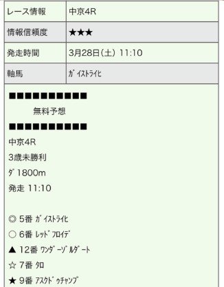 4月3日(金)船橋11Rの無料予想で的中