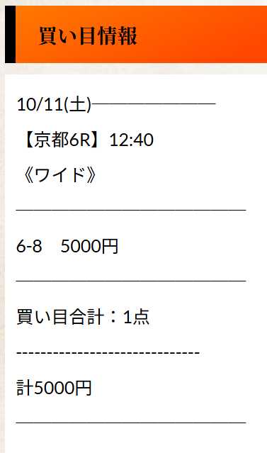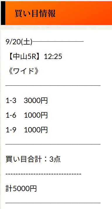 馬券代総額5000円