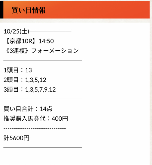 10月25日(土)はこのイメージ通りの無料予想的中でした!