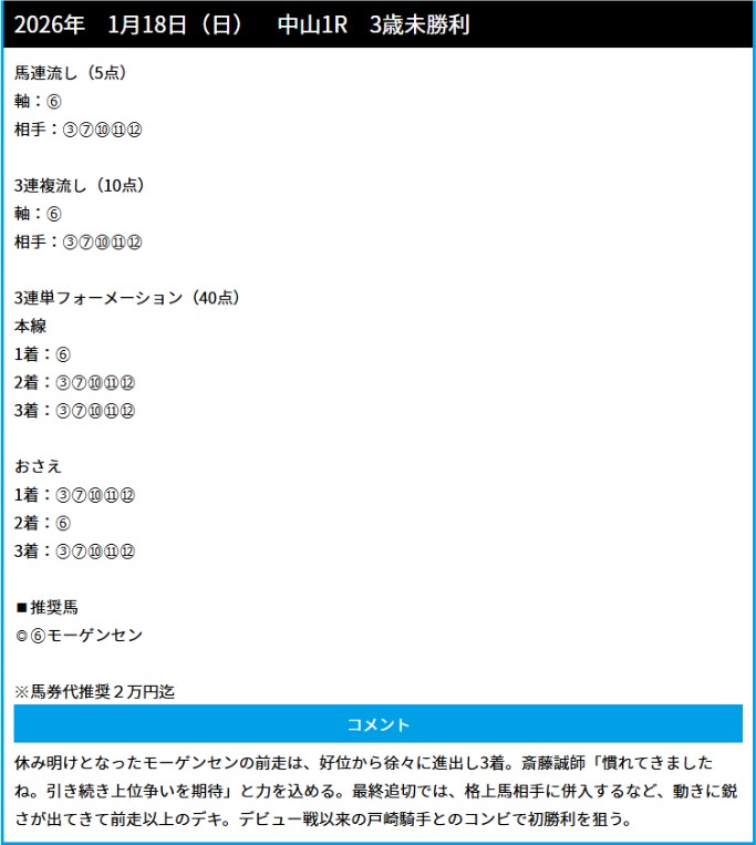 2026年最初の中央競馬無料予想で5日(月)的中を届けてもらいました!
